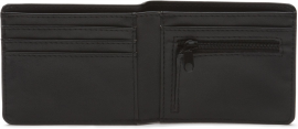 Portfel męski marki Vans, model Drop V. Portfel bez zapięcia oferuje wewnętrzne przegródki na banknoty, dokumenty, karty kredytowe i kieszeń zapinaną na zamek (na drobne monety). Materiał to 100% poliuretan, a wymiary to około 11,2 x 9 x 2 cm.